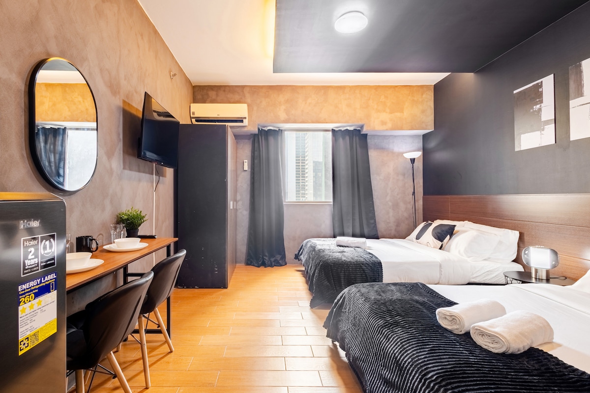 Tapasztald meg a luxust és a nyugalmat elegáns, modern lakásunkban a Pasig állambeli Brixton Place-ben. Mindössze 3-5 percre a BGC-től és 10-15 percre a Makati Cbd-től. Élvezd a hálószoba melletti saját erkélyt otthonos és kifinomult helyünkön. Tökéletes egyedül vagy olyan pároknak, akik stílusos és békés szállást keresnek a BGC közelében. A csúcsminőségű kényelmi szolgáltatások, a teljesen felszerelt konyha és az üdülőhelyi hangulat miatt lazíthatsz. Tetőtéri hozzáféréssel, ahonnan lélegzetelállító kilátás nyílik a városra. Foglalj most!