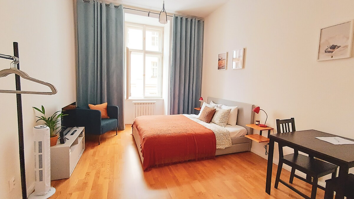 🌟 Beautiful refurnished apartment in the center of Prague. Only a few steps from the restaurants, historical monuments - the National Museum, Astronomical Clock etc., shops, metro station, tram. Spacious apartment for 6+1 persons with elevator, A/C and a private balcony. You’ll have everything you need for a comfortable stay. Explore cafés, shops, and attractions just steps away.