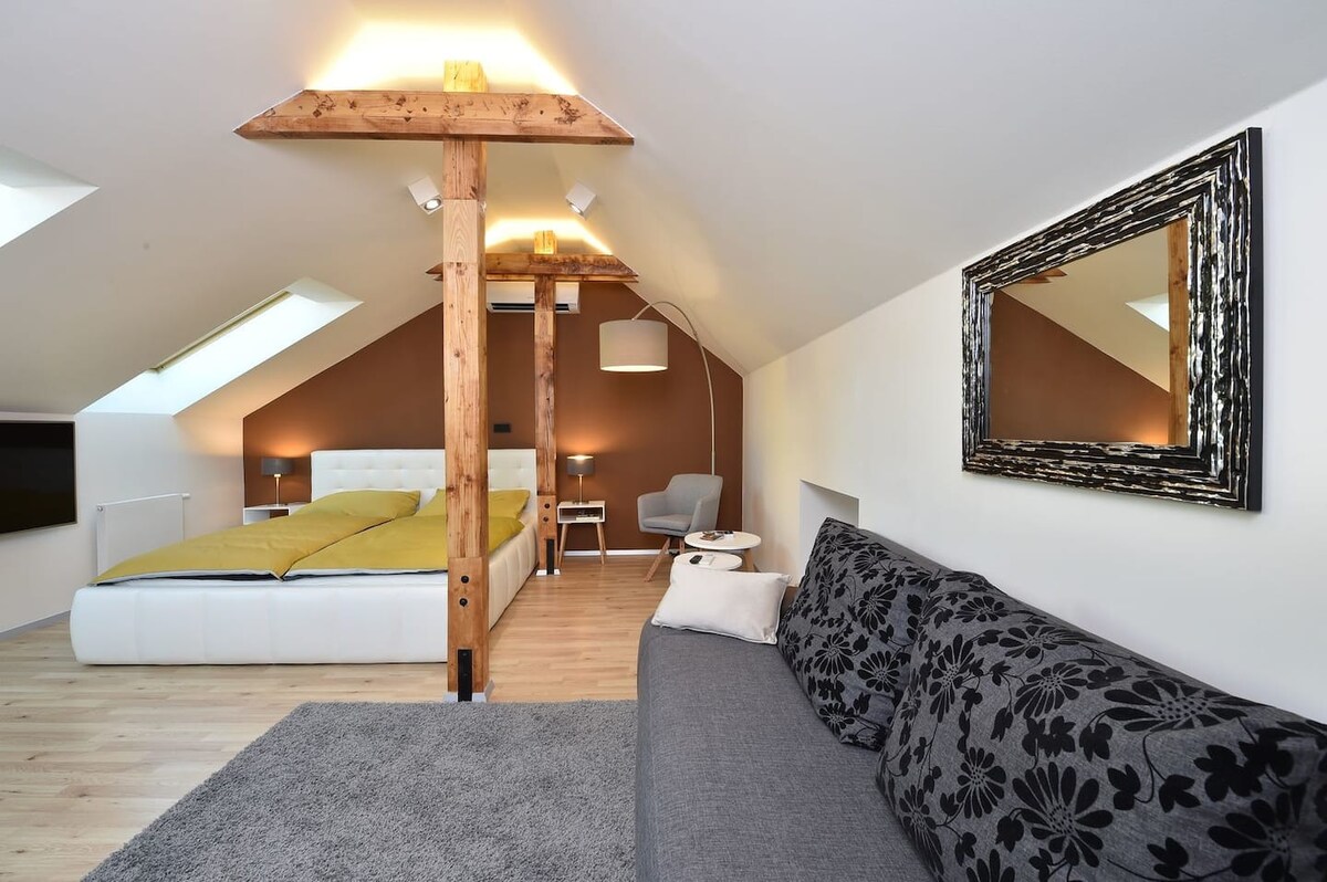 Enjoy a luxurious attic apartment in the heart of Prague. In a quiet area, less than two minutes from Wenceslas Square and 15 minutes from Old Town Square. The apartment offers all the comforts of home that you may need on your business trip or vacation. If you need any help, we are available!