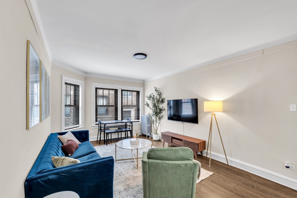 2nd-floor unit with two flights of stairs. Older building with radiant heat managed by the building. Enjoy your stay in this charming 2BR/1BA apartment in Hyde Park. Features a comfortable living area, full kitchen, and cozy bedrooms—perfect for families, friends, or business travelers. Close to the University of Chicago, Museum of Science and Industry, and lakefront parks. Easy access to dining, culture, and public transit. A great home base for exploring Chicago!