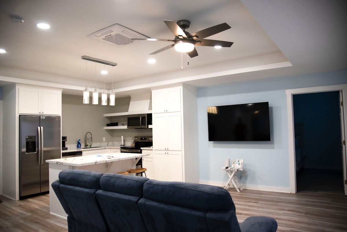 Recently renovated & newly furnished cottage is just 2 blocks from the beach and has all the charm and amenities for your next vacay or quick getaway. Close to the beach & only a stones throw from many restaurants, clubs and attractions. Love to cook? We have a HUGE mod kitchen with counter high barstools & a propane grill outside for BBQ. When entertaining at home there's an 82" Smart TV in the living room and Smart TVs in both bedrooms. ( no cable but lg asst of channels)
