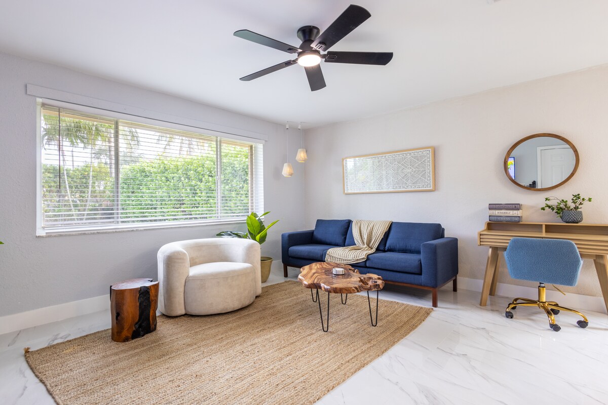 Bright, modern, and effortlessly spacious — this 3BR/2BA Miami home gives you room to breathe. With over 2,000 sq ft of open living space, a fully equipped kitchen, fast WiFi, smart TVs, and private parking in a quiet neighborhood, it's the kind of place that feels like an upgrade the moment you walk in. Hard Rock Stadium is just 5 minutes away — but you might not want to leave.