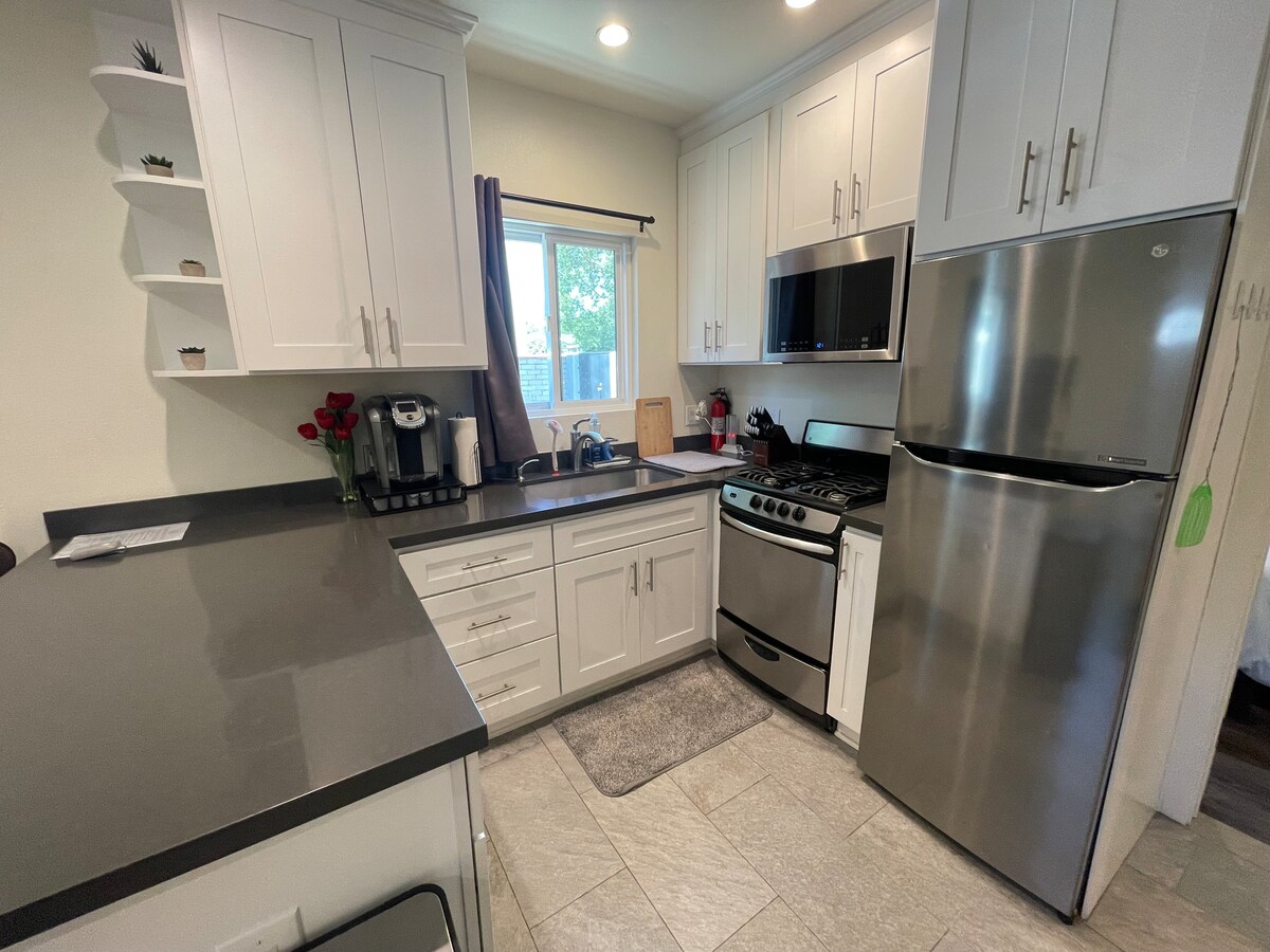Charming Private Back-House near Downtown Burbank. Bright, welcoming space filled with natural light. Features a plush Queen bed, kitchenette, and DirecTV. Located on a quiet street with plenty of available parking. Minutes from all major studios, Burbank Airport, and easy access to everything LA has to offer. Perfect for travelers looking for a comfortable, convenient, private and peaceful stay.