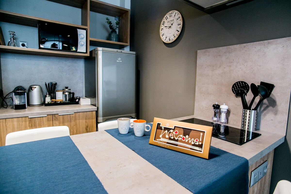 Stílusos és elegáns lakás a városközpont és az éjszakai élet szívében. A hely tökéletes arra, hogy élvezd mind a történelmi, mind a helyi városközpontot, mivel sétatávolságra van Thesszaloniki ikonikus kulturális helyszíneitől, de Thesszaloniki tengerpartjától, bevásárlóközpontjától és éjszakai életétől is. A lakás tökéletes azoknak a pároknak, magányos utazóknak, barátoknak vagy üzletembereknek, akik felejthetetlen szállásra vágynak a város szívében.