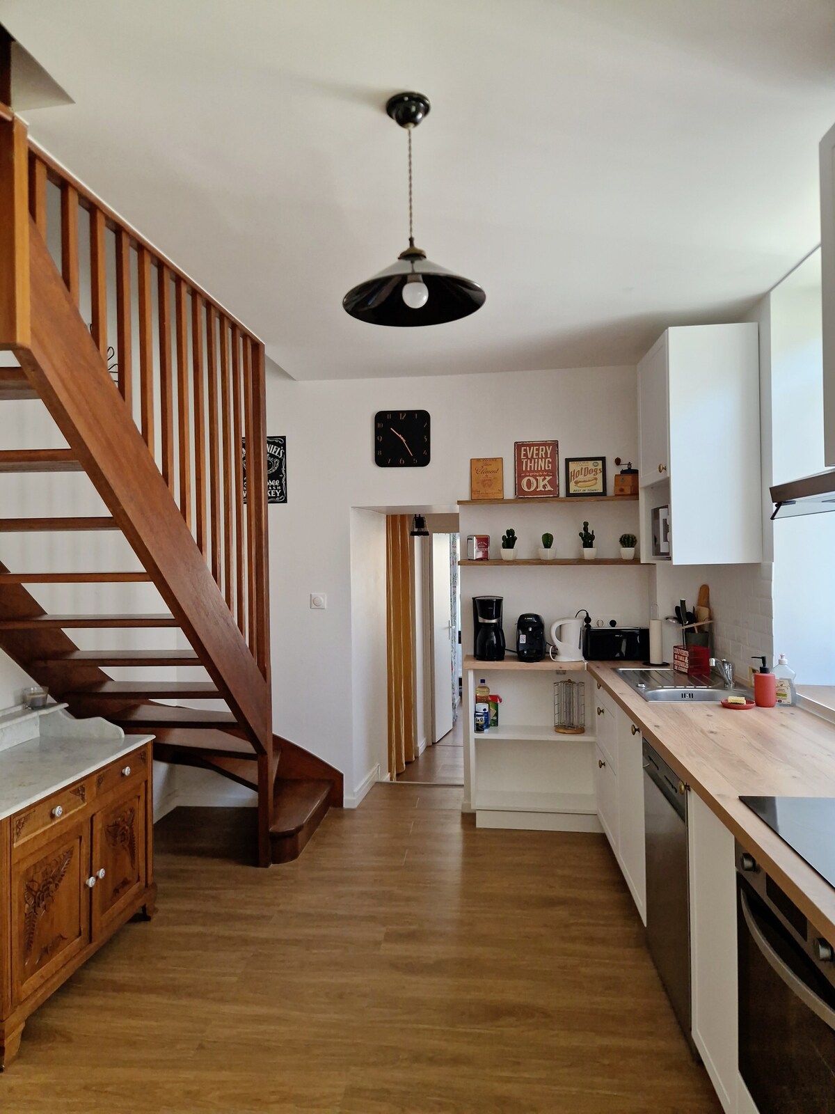 Agréable hébergement de 70m² rénové avec soin, idéal pour une famille ou 2 à 6 personnes. Profitez d'une décoration chaleureuse, d'une cuisine toute équipée, de deux chambres et d'une petite cour extérieure partagée. À quelques minutes des plages et sites naturels, ce logement est parfait pour explorer le Cotentin. Situé à côté d'une boulangerie et proche de tous commerces, il allie calme et praticité. Linges de lit et serviettes de bain fournis, parking gratuit à proximité.