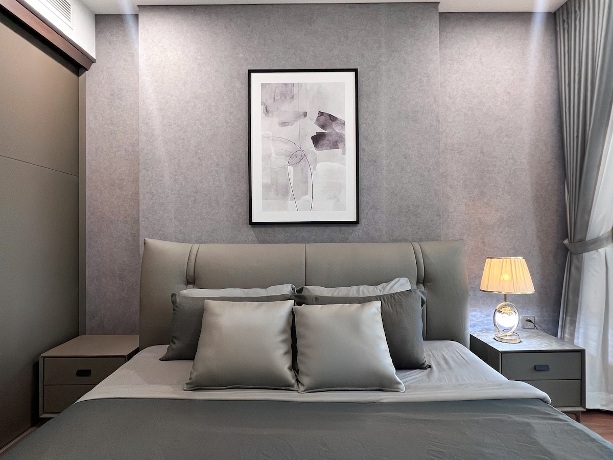 Tágas, 61 m2-es, teljes, 2 hálószobás, 2 fürdőszobás lakás. Békés kilátás a Saigon folyóra és a zöld környékre a 14. emeletről. 3 légkondicionáló. 2 queen méretű ágy szuper kényelmes matracokkal. Forró zuhanyzók. Teljesen felszerelt konyha a napi étkezésekhez. Smart TV Youtube, Netflix, G-Chromecast. Nagy sebességű wifi. Mosógép. Erkély. Csendes, világos és szellős, éjjel-nappali biztonság. A Dist 2-ben található, mindössze 15 percnyi autóútra a Dist 1-től (városközpont) Könnyű hozzáférés a közeli kávézókhoz, éttermekhez, kényelmes üzletekhez és szupermarketekhez.