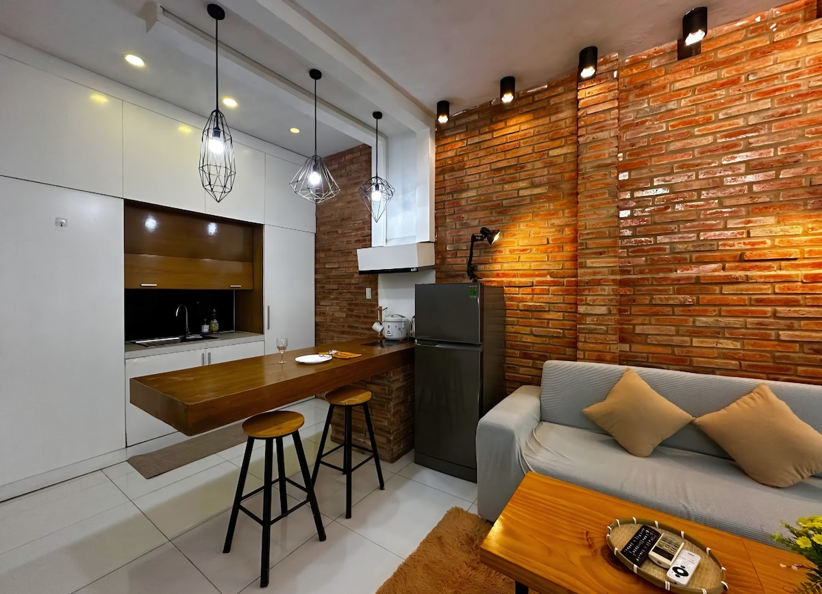 The Cactus Building serviced apartments offer an exciting combination of the modernity of the city and the comfort of nature. - Located right in the center of District 1 - Nguyen Thi Minh Khai street, near Thi Nghe bridge-market, famous Hai An bookstore, Saigon Zoo and Botanical Garden nature... but hidden in the middle of a quiet alley and surrounded by land of food and drink. - Our design aims for peace in the bustling city. The apartment is fully furnished; with many convenient services.
