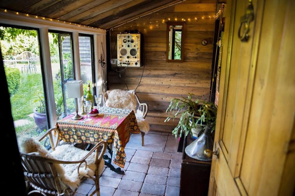 The Hobbit is a small cosy hideaway, located within the grounds of a beautiful English country garden. The space gives the feeling of an old ships cabin, with original oak beams and panelling. The place might be small but still has all the comforts of home, including a standard double bed, underfloor heating and a deep roll top bath. As well as being furnished with antique fixtures and fittings. The Hobbit has a small but lovely garden room, where guests can just watch the world go by.