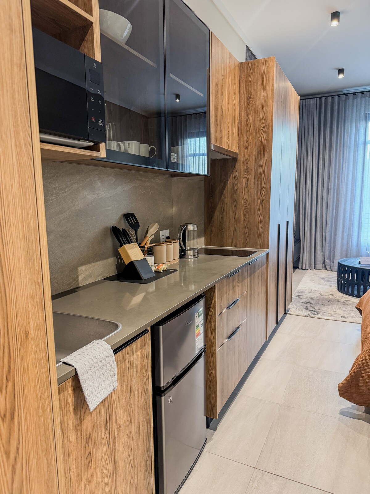 Élvezd a stílusos élményt terheléscsökkentés nélkül ebben a központi elhelyezkedésű lakásban. Két terasz festői kilátással Pretoria keleti részére. 1 hálószobával, modern, mikrohullámú sütővel felszerelt konyhával, 75"-es okostévével, ülősarokkal és zuhanyzós fürdőszobával rendelkezik. Ez az egység Pretoriában található, az Atterbury Boulevard közelében, sétatávolságra a Menlyn Maine bevásárlóközponttól és a Time Square kaszinótól. A tetőtéri medence és étterem jelenleg felújítás miatt 2025 október végéig zárva van.