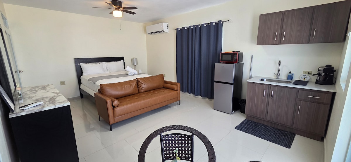 Your Manatí Escape 🌊 Cozy, Central & Convenient. Best Value in Manatí. Perfect Getaway 🌴 Near Beaches & Restaurants. Modern, clean room, hotel style. The perfect place to stay and enjoy the beautiful beaches of Manatí and the Northside of Puerto Rico. The room have a kitchen with a fridge, microwave, coffe maker, small electric stove and cooking essentials. Queen size bed, Smart TV, small dining table for two, a sofa, Wi-Fi, closet and bathroom.