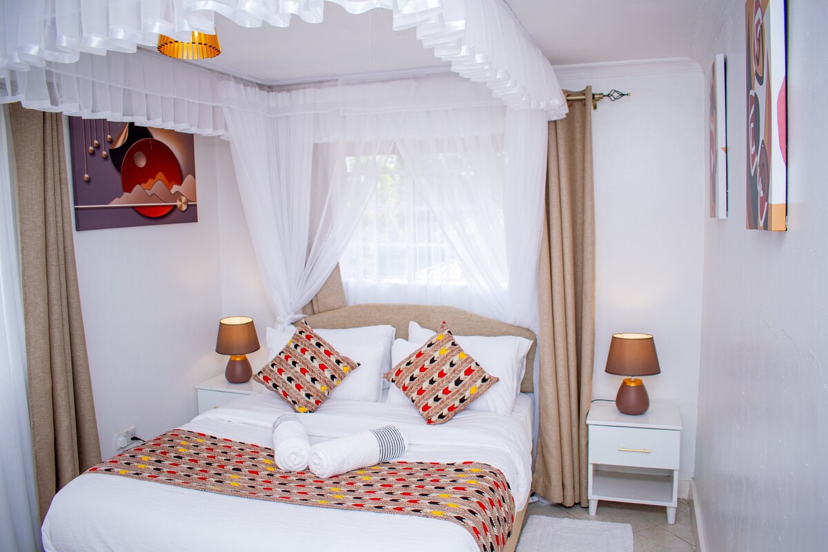 Hangulatos és fényűző, bútorozott, egy hálószobás lakás Westlandsben, Nairobiban, mindössze 3 perc sétára a sarit központtól. Az apartman franciaágyból, teljesen felszerelt konyhából, nappaliból, forró zuhanyzóból, nagy sebességű Wi-Fi-ből és DSTV-ből áll. A vendégek ingyenes úszást, edzőtermet és szaunát is élvezhetnek. A helyszínen van egy konferenciaterem, ahol üzleti találkozókat tarthatsz, valamint egy szabadtéri étterem az eseményeidhez. Az épület éjjel-nappal őrzött, beleértve a CCTV-kamerákat is, és a szobákhoz kártyarendszeren keresztül lehet hozzáférni.