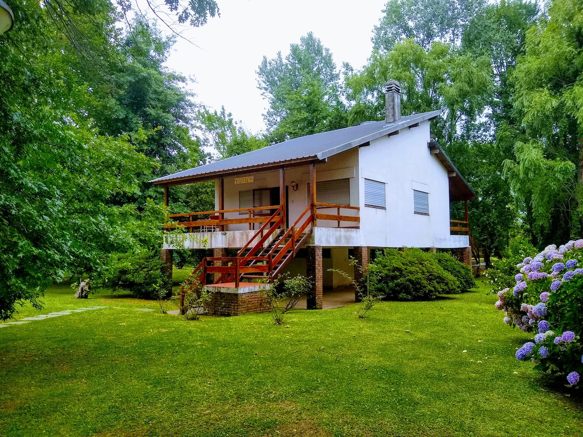 Látványos vízi kunyhó, hajókikötővel. 80 méterre a folyó elejétől, egy 12 hektáros ingatlanon, a természet közepén, saját ösvényekkel, hogy megismerjük a sziget belsejét, valamint az őshonos növény- és állatvilágot. Lenyűgöző lakberendezés olyan részletekkel, amelyek álmossá teszik a szálláshelyen eltöltött idődet. A hidegben a fatüzelésű otthon. Ha esik az eső, ne aggódj, a nagy terasz és a grill tető alatt van. Élvezd a békét és a csendet . Ámulj el a melegségüktől és a jó ízlésüktől. Figyelem, a pezsgőfürdő nem működik!