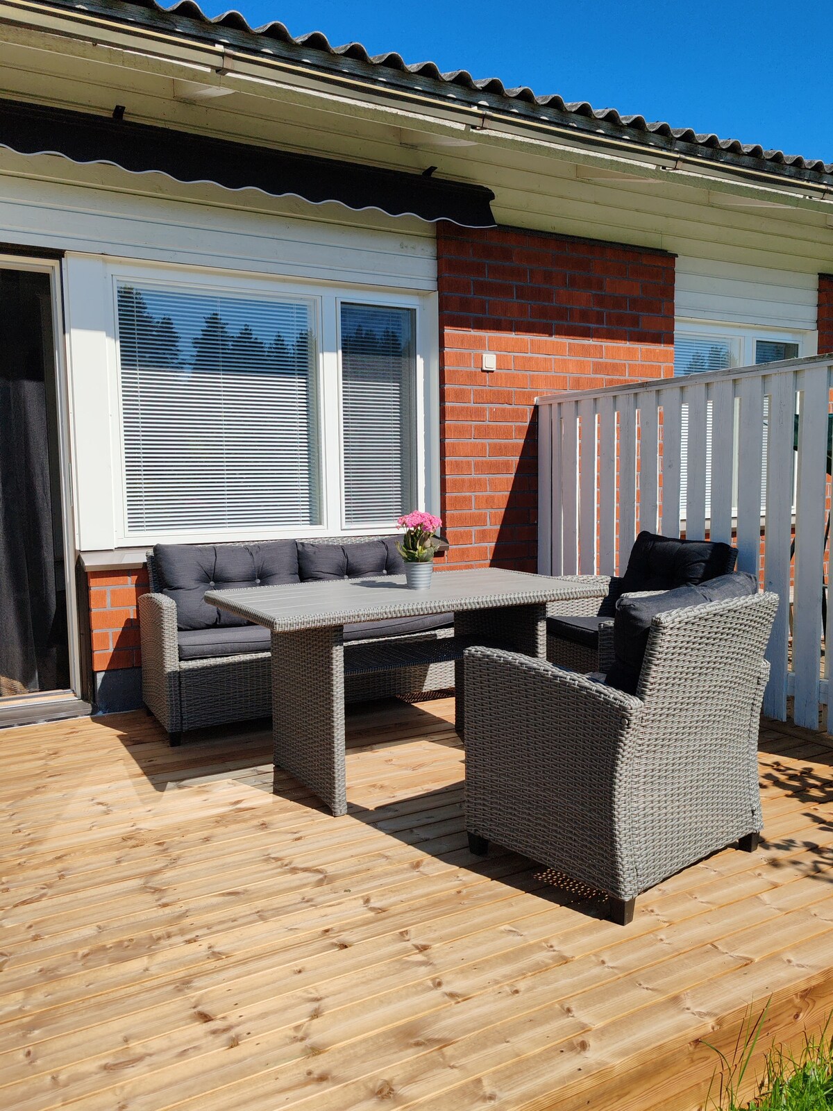 Stílusos és gyönyörűen berendezett 100m2-es villa lenyűgöző kilátással a tóra a nagy ablakokból. Jól felszerelt ház, nagy teraszok, tengerparti szauna és szabadtéri pezsgőfürdő (felár ellenében). Modern, nyitott konyha, étkező, nagy nappali, 2 hálószoba, két hálószoba és kétszemélyes hálószoba és WC/fürdőszoba. Gyönyörű villa csodálatos kilátással a tóra. Jól felszerelt ház, nagy teraszok, tóparti szauna és jaguzzi (felár ellenében). Modern konyha, étkező, nappali, 2 hálószoba, hálószoba 2 fő részére, fürdőszoba.