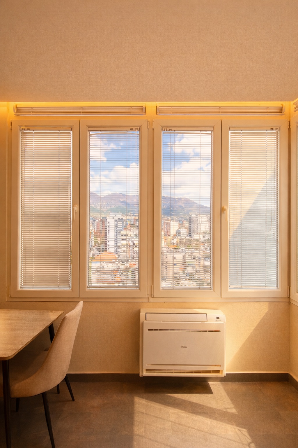 100 m²-es dizájnerlakás 3 hálószobával Tirana központjában, a Skanderbeg tér és az Új Bazár közelében. Kifinomult tapétákkal borított falak, két stílusos fürdőszoba és szállodai minőségű ágyak egyedi matracokkal a mély alváshoz. Élvezd a két erkélyt a reggeli kávé vagy a naplementés italkortyok mellett. Teljesen felszerelt konyha, gyors Wi-Fi és légkondicionálás mindenhol. Ideális családoknak, barátoknak vagy üzleti utazóknak, akik teret, kényelmet és csendes eleganciát keresnek.