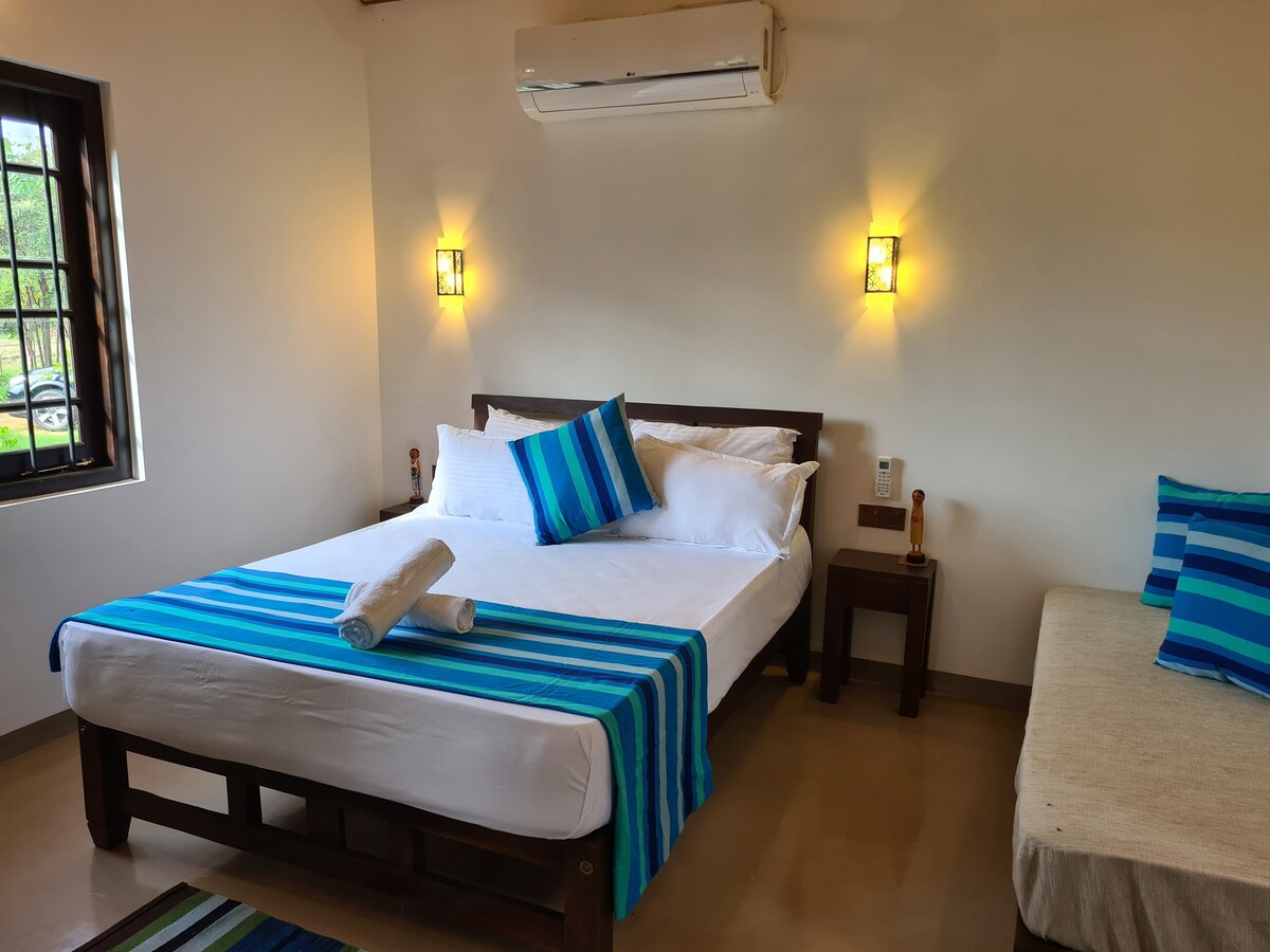 Escape into nature at our private one-bedroom villa, peacefully located on the border of Yala National Park, just a 20-minute drive from the Galge Entrance. Surrounded by lush greenery and untouched wilderness, this villa is ideal for couples and nature lovers seeking privacy, comfort, and an authentic safari experience. Perfectly blending modern conveniences with a serene natural setting, our villa offers a unique stay where you can relax, unwind, and reconnect with nature🌿