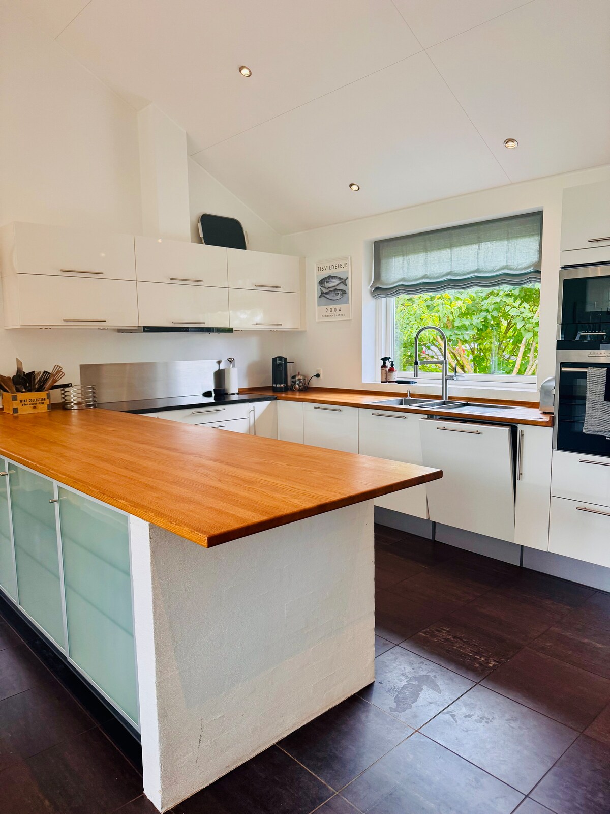 Újonnan épült kisház stílusos skandináv dizájnnal, mindössze néhány perc sétára a strandtól. Nagy, szép, csempézett terasz nagy étkezőasztallal, grillezővel, bárbútorokkal, elektromos fűtött pezsgőfürdővel és kültéri zuhanyzóval. Gyönyörű, nagy nappali, ahol szabadon lehet dönteni. A házban 3 hálószoba, alkóv és egy nagy loftlakás található franciaággyal. A konyha teljesen fel van szerelve sütővel, mosogatógéppel, hűtőszekrénnyel, borhűtővel és kávéfőzővel. Mosógép és szárítógép is rendelkezésre áll.