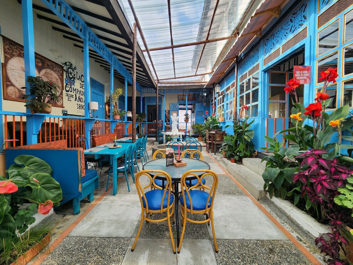 🏡 Bienvenido a tu escapada perfecta en el corazón de Salento 🌿 Donde el verdor de la vegetación te envuelve en paz y tranquilidad 🎒 Guardamos tu equipaje desde las 6 am sin costo 📍 Ubicación ideal: ✔ A 4 calles del parque principal. ✔ 5 minutos caminando a los principales puntos de interés. ✔ 🛏 Habitación Amplia y Cómoda ✔ 🚀 WiFi rápido: Perfecto para teletrabajar o planear tus aventuras. ✔ 🚿 Baño limpio y funcional: Con agua caliente y amenities básicos.