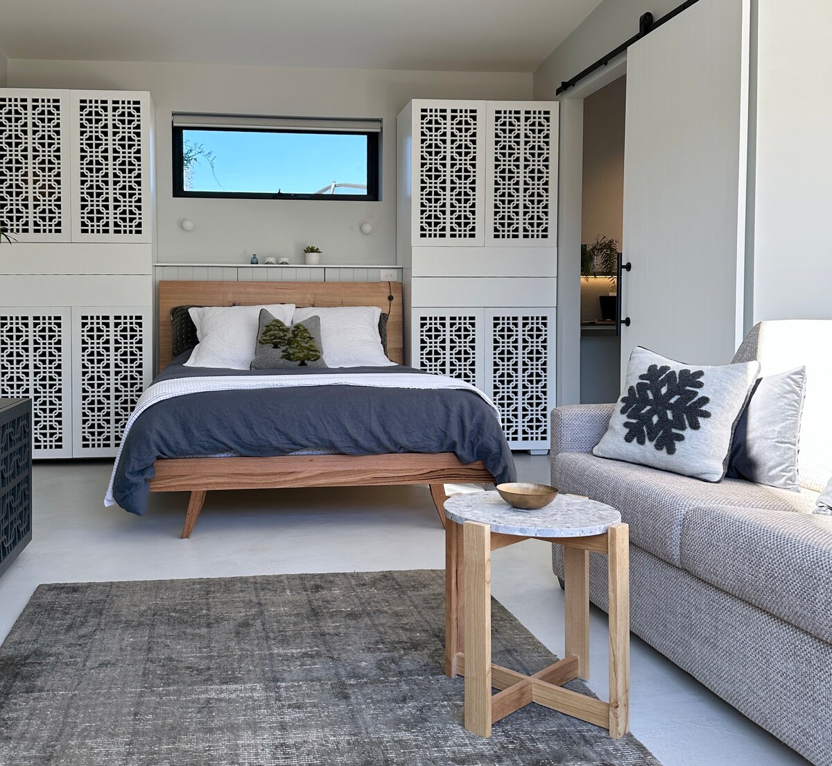 This beautiful shipping container tiny home is wonderful for people who love nature, animals and walking in the bush. This rustic tiny home is architecturally designed and constructed almost entirely of recycled materials gathered from house demolitions. Situated in an amazing location overlooking large lawns and a pond with sea views only 20mins from the cbd. We would love to share our quirky home with you. We also rent space for parties and weddings at a higher cost per night. Just ask