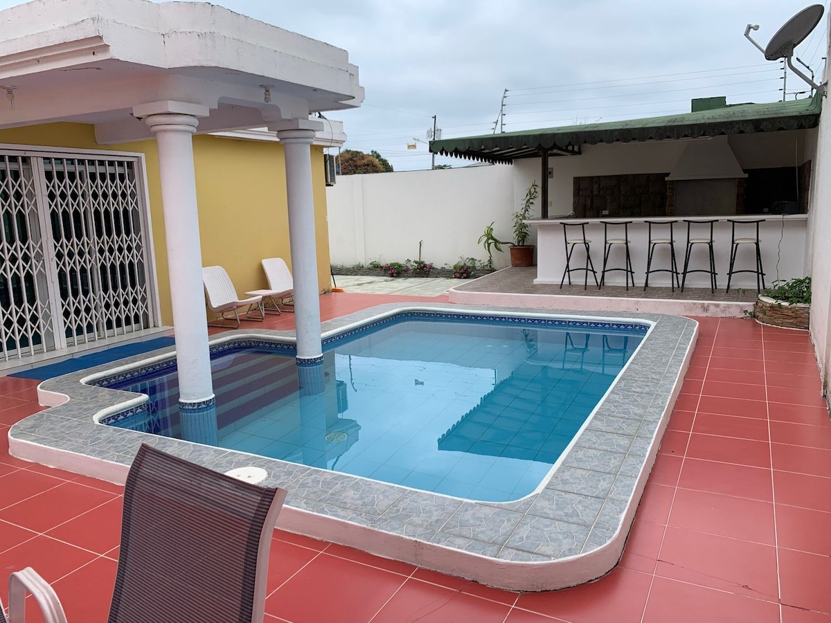 Egy hely, ahol kikapcsolódhatsz a városból, és élvezheted a gyönyörű tengert. Mindössze 4 háztömbnyire (5 perc sétára) található Ecuador egyik legszebb strandja. A ház minden felszereléssel rendelkezik, hogy az élményed a lehető legjobb legyen. Jól elosztott helyiségekkel a légkondicionált szobákban, felszerelt konyhával, úszómedencével, 2 parkolóval, TV-szobával, erkéllyel és egy gyönyörű asztallal a medence mellett. Gondolkozz egy otthon melegségén.