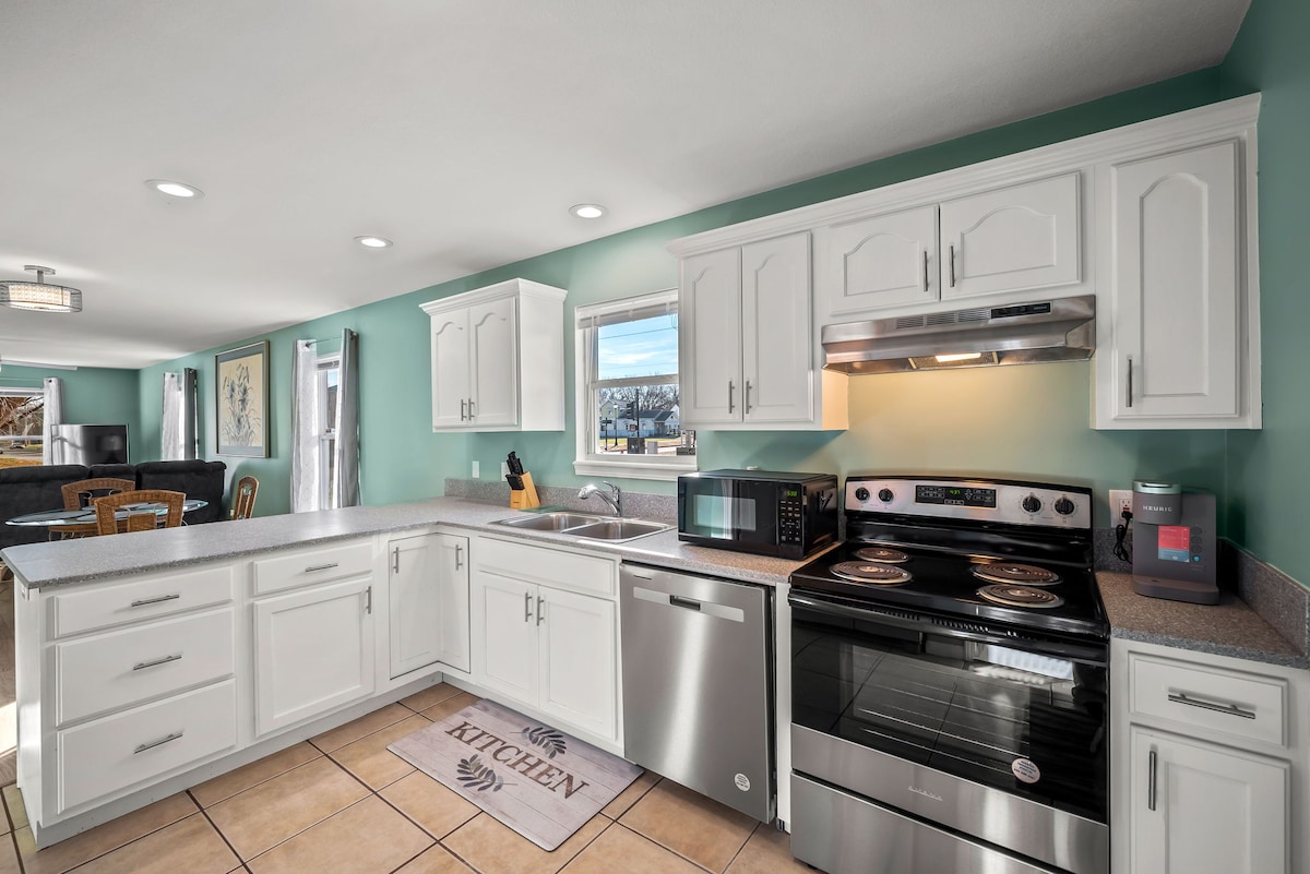 Pontosan ezért SZERETED az Airbnb-t. Ez a teljesen felújított tanyasi otthon négy hálószobával és HÁROM teljes fürdőszobával rendelkezik, amelyek közül kettő saját fürdőszobával és NAGY hálószobával rendelkezik, és az egész ház kevesebb mint 20 éves. Minden szobában van egy okostévé SIX-szal! Főzz a NYITOTT KONYHÁNKBAN KVARCPULTOKON anélkül, hogy lemaradnál a beszélgetésről. Hozd magaddal a prémes babádat, hogy élvezhesd a kerítéssel körülvett hátsó udvart, és MINDENKIT vigyél magaddal, hogy élvezze a két lakóteret és az otthon több mint 2000 négyzetméterét.