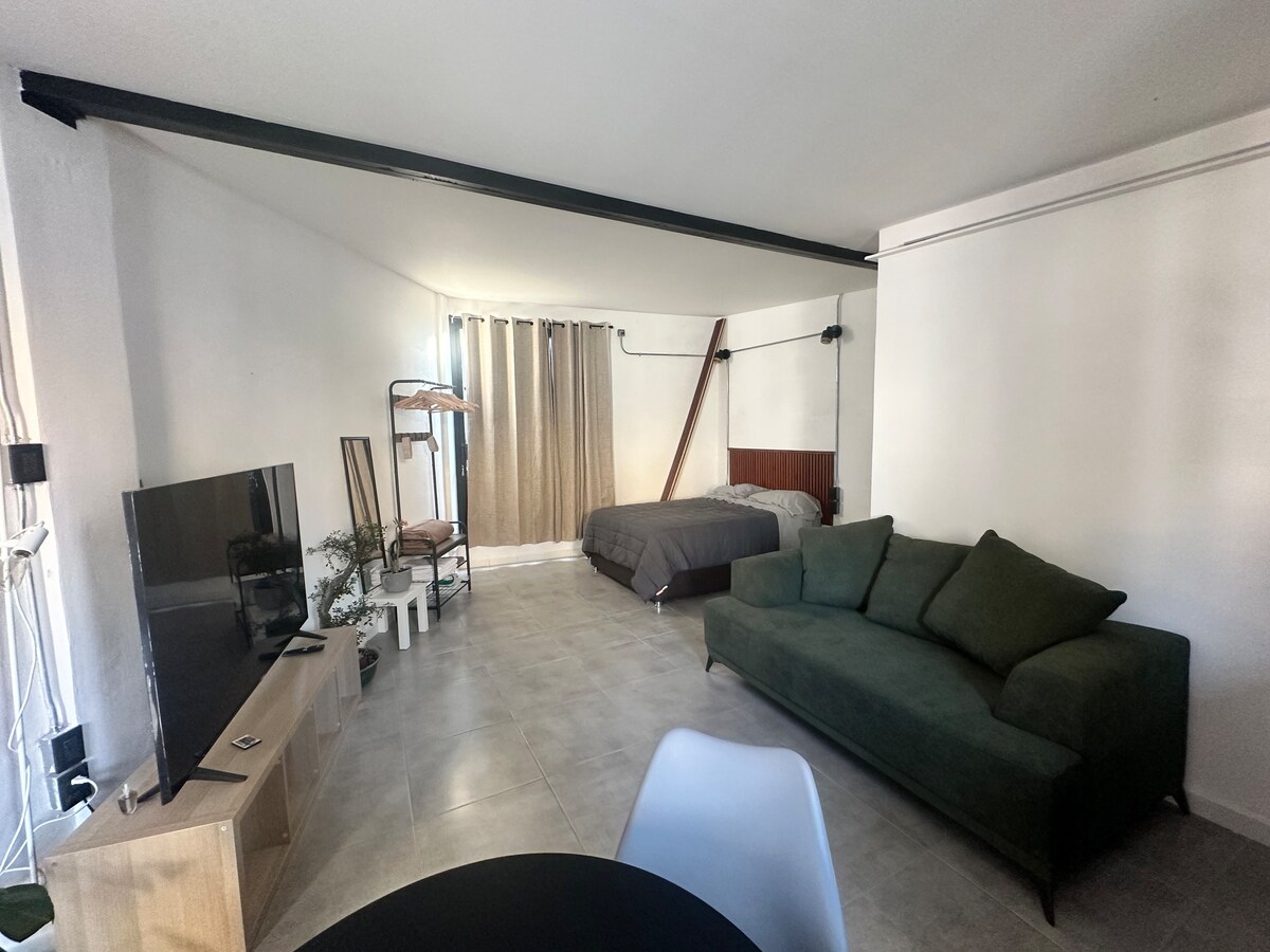 Központi elhelyezkedésű stúdió egy újonnan épült épületben, amely egyesíti a történelmi maradványokat. Kiváló elhelyezkedésű, két és fél háztömbnyire a pueblai katedrálistól, ideális hely a gyönyörű történelmi központ felfedezéséhez. Közös kényelmi szolgáltatásai vannak: fűtött úszópálya napkollektorokkal és terasz gyönyörű kilátással. Hosszú távú foglalások esetén a stúdió takarítása, valamint a törölközők és lepedők cseréje hetente egyszer biztosított.