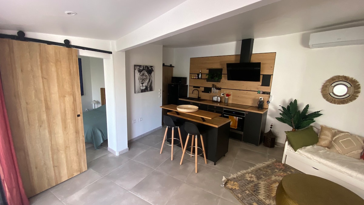 Nagyon szép, új, légkondicionált szálláshely bábos hangulatban, egy csendes lakóövezetben, egy szép ingatlanon. Világos T2, konyha és nappali , hálószoba és külön zuhanyzó. Független szálláshely külsővel (terasz és kert felőli oldal), amely készen áll a fogadásodra. Torreilles faluban található, 5 percre minden kényelmi szolgáltatástól mind a falu központjában, mind a külső üzletekben, valamint 5 km-re a strandtól és 10 km-re Perpignantól Kerékpárút az otthontól a tengerig