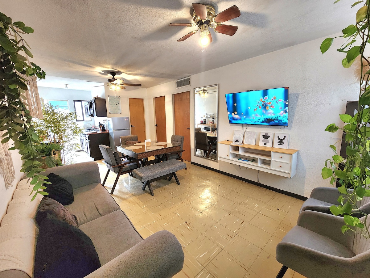 Merülj el exkluzív, egy hálószobás és egy fürdőszobás apartmanunk kényelmében. Ideális 2 felnőtt és 2 12 év alatti gyermek, vagy 3 felnőtt számára. Queen méretű ágy, Wi-Fi és 2 TV. Egy kanapé, amely elég nagy ahhoz, hogy extra második ágyként használják. Felszerelt konyha minden eszközzel és készülékkel. Mosodai központ. 2 mini split. 1 parkolóhely. A közös területeken hozzáférés az úszómedencéhez, a közös munkaterülethez, a biliárdasztalhoz, az edzőteremhez. Emellett padelozhatsz és szórakozhatsz