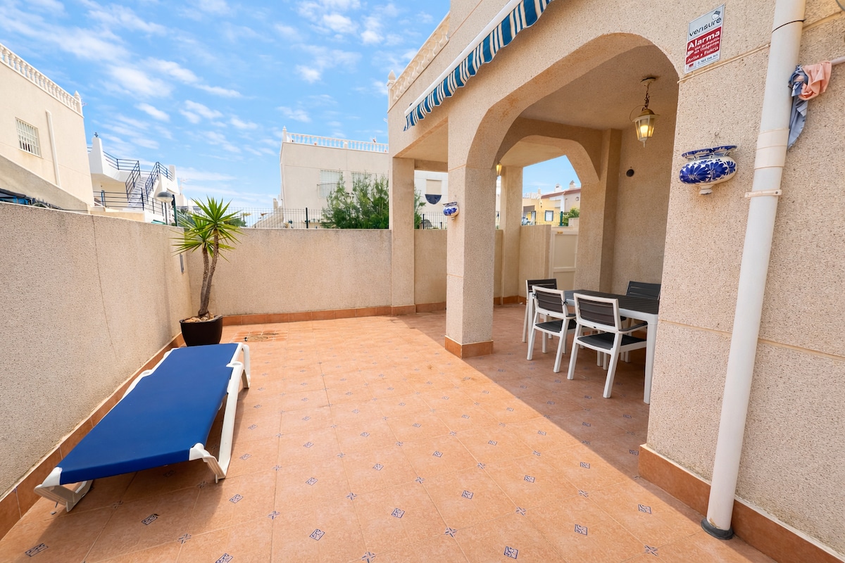 Gyönyörű bungaló tengerre néző kilátással, teljesen felújított és nagy gondossággal berendezett. Minden bútor új. Nappali, étkező, 2 hálószoba beépített szekrényekkel. 3 nagyon nagy terasz, gyönyörű közösségi medence. Kevesebb mint 5 percre két nemzetközi golfpályától, a „Villamartin Golf” és a „Real Club Golf Campoamor”, valamint 10 percre a „Las Colinas Country Club” és a „Las Ramblas Golf” golfpályáktól. 3 km-re a gyönyörű Plage de la Zeniától és 2 km-re a Zenia Boulevard Shoping Centertől.