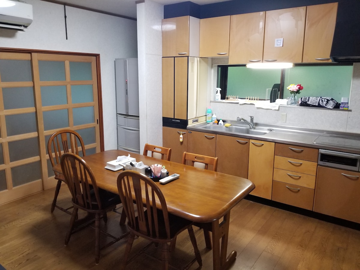 Ez egy privát otthon udvarral, ahol az egész család pihenhet. A szálláshelyen legfeljebb 7 vendég szállhat meg, és a szállásdíj a vendégek számától függetlenül nem változik.Nagyszerű, ha nagy csoportnál, például egy családnál szállsz meg. Ha kisgyerekeid vannak, teljes mértékben élvezheted a teljes privát teret anélkül, hogy a környezet miatt kellene aggódnod. Parkolás a helyszínen lehetséges.Parkolás legfeljebb 4 jármű számára lehetséges Érkezz a nagy belső garázsba egy esős napra.(Legfeljebb 2 jármű számára van parkolási lehetőség) 12 perc sétára a Yonago Kitaro repülőtértől (autóval 3 perc) 5 perces autóútra a „Dream and Tomato Terminal” nemzetközi komptermináltól Minden autó kényelmesen bérelhet autót, taxit stb. Nagyon örülnénk, ha itt lennél!