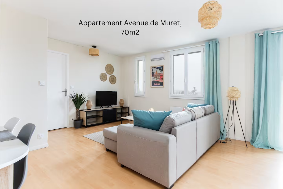 Envie d'être en plein cœur de TOULOUSE tout en profitant d'un appartement de 70m2 TOUT ÉQUIPÉ, bord de Garonne ? ✔ ARRIVÉES AUTONOMES : à partir de 16h ✔ EMPLACEMENT IDÉAL : Tramway "Fer à Cheval" et Prairie des Filtres en bas, proche Stadium & Zénith, métro St Cyprien (Ligne A) & Palais de Justice (Ligne B) ✔ CAPITOLE à 15 mn ✔ VUE DÉGAGÉE/5è ÉTAGE/DOUBLE VITRAGE ✔ CLIM ✔ 3 COUCHAGES : 2 Lits doubles 160x190 et canapé convertible ✔ PLACES DE PARKING autour de l’immeuble ✔ CUISINE ÉQUIPÉE ✔ TV