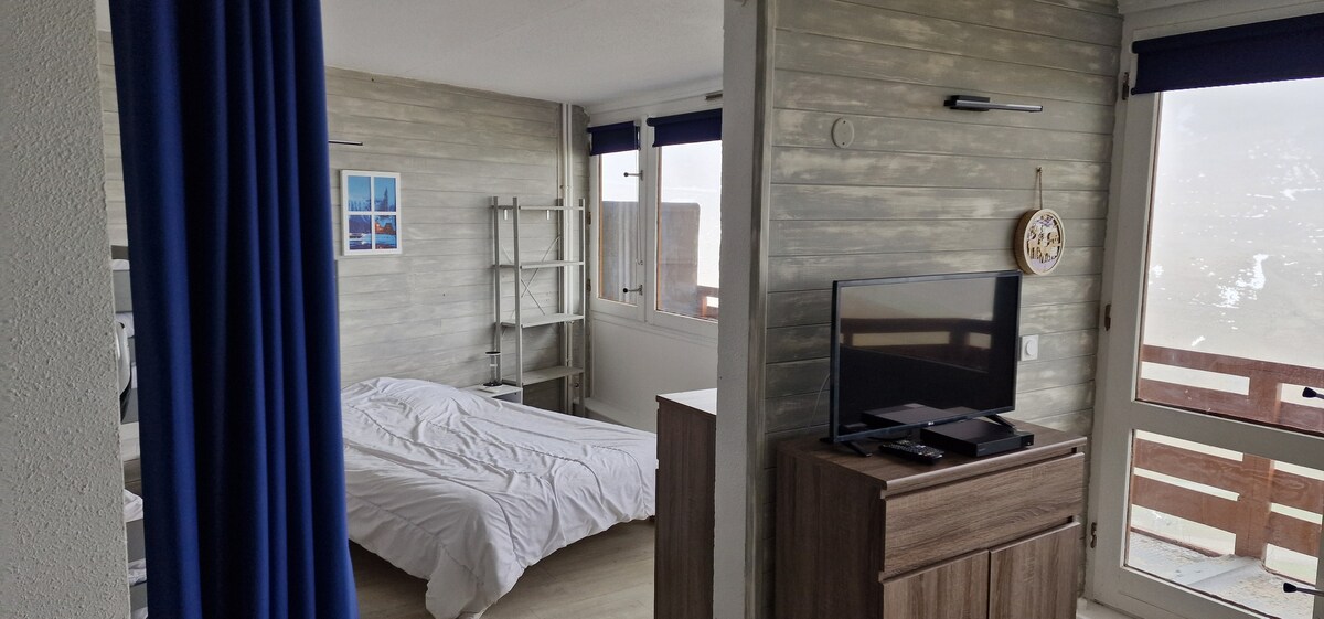Mongie Bagnères de Bigorre-ban egy 5 fős, felújított stúdiót kínálok neked, 100% -ban a lejtők lábánál, erkéllyel a déli oldalon. Kamra, ahol sílécet és szánkót vehetsz fel. Montana 1, biztonságos lakóhely emeletenként 2 lifttel és saját parkolóhellyel a földmagasság alatt 1m85 „vigyázz a tetődobozzal” az épület lábánál. (Videomegfigyelés alatt álló lakóhely).