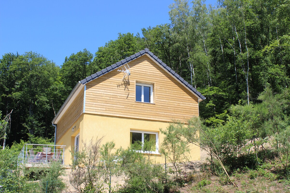 [chalet classified Meublé de tourisme 3*] Az Ardennek egyik legszebb helyén található faházunk örömet szerez azoknak, akik pihenésre, kikapcsolódásra és nyugalomra vágynak, valamint a természet és a sport szerelmeseinek. Az erdő és számos túraútvonal lábánál, a teraszról és a nappaliból lélegzetelállító kilátás nyílik a Semoyra, és túra- és kerékpárútvonal-könyveink segítségével felfedezheted a régió legfigyelemreméltóbb helyeit!