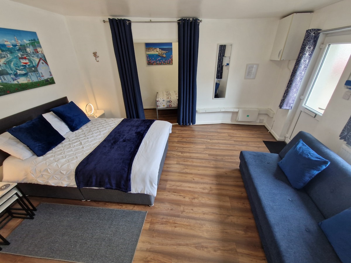 Kiadó helyed a Mumbles-i tengerparti otthonunk földszintjén található, ahonnan zavartalan kilátás nyílik a Swansea-öbölre. A lakosztályból jobbra a Mumbles mentőcsónak-állomás, balra pedig az Oystermouth kastély látható. A lakosztály king méretű ággyal, sarokkanapéval (ami kanapéágy is), teljes méretű hűtőszekrénnyel, asztallal és székekkel, íróasztallal, tárolóval, zuhanyzóval, 50 hüvelykes TV-vel és wifivel rendelkezik. Trambulin a hátsó részen. Kérjük, vedd figyelembe, hogy nem biztosítunk főzési lehetőséget, de vannak tálak, tányérok, poharak stb.