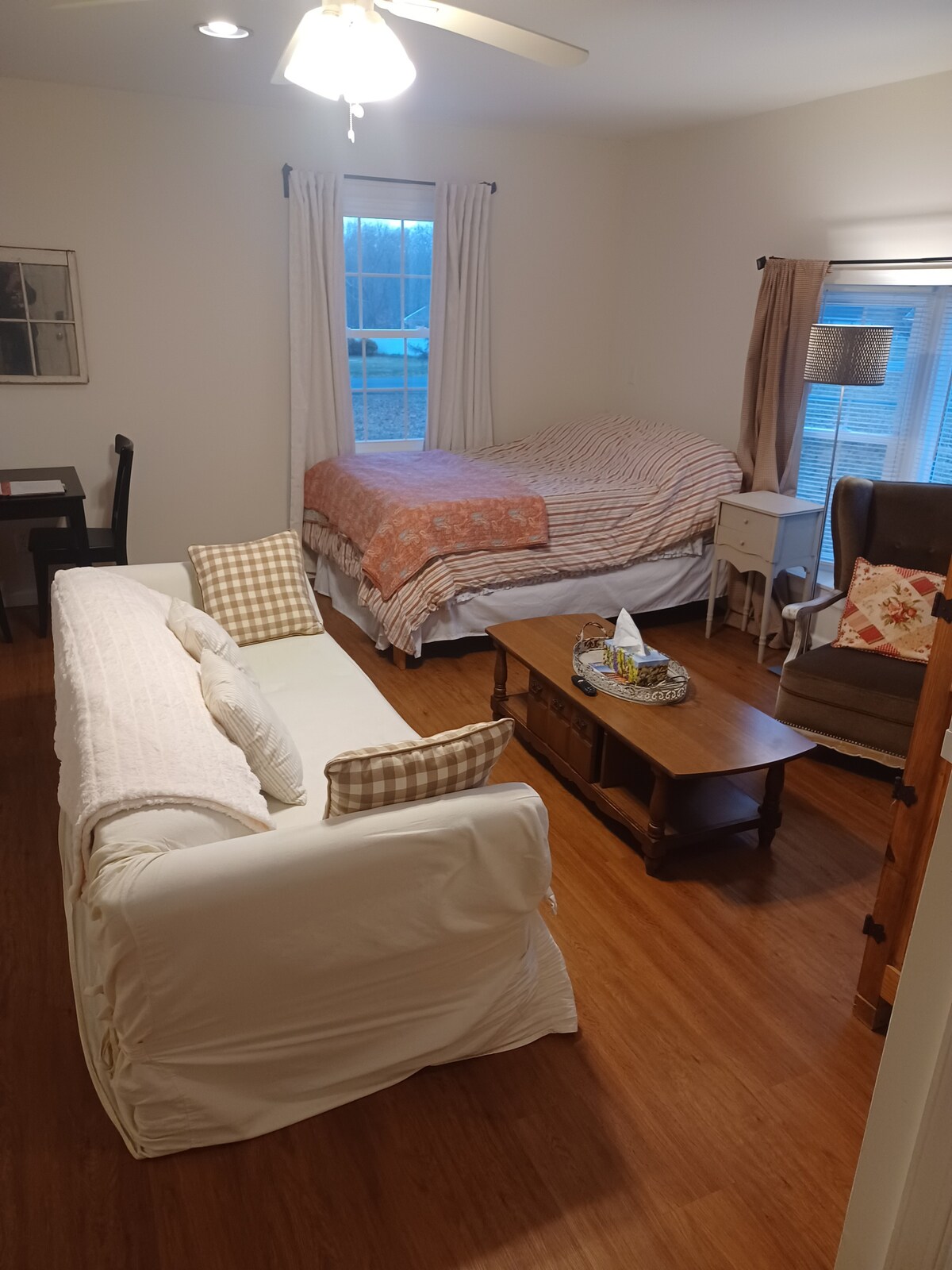 Kihúzott elvonulás. Nagyszerű madarászoknak, zongorázóknak, kertészeti rajongóknak, régiségeknek. Húsz percre a történelmi Havre de Grace-től. A közeli kertek közé tartoznak a Longwood Gardens, a Chanticleer Garden, a Winterthur Múzeum, a Kert és a Könyvtár, valamint a LaDew Topiary Gardens. Kis konyha mikrohullámú sütővel, mosogatóval, hűtőszekrénnyel és kávéfőzővel. Saját bejárat. Füstérzékelők, hajszárító. Nincs wifi. Nincs tűzhely.