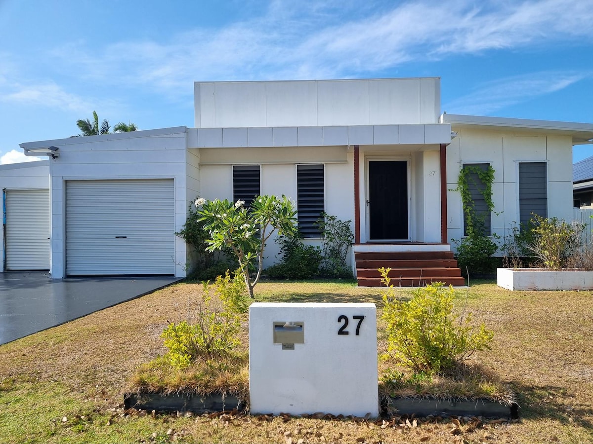 Newly built QLD, Island home. Sea view, light breezy & direct beach access along a private path. Flat level lawn , fire pit & native trees. You might even spot a Koala. Indoor/Outdoor living at its best . An enormous open plan kitchen, dining & living which flows to the decking ,BBQ, ice machine & bar fridge. Large TV with Chromecast and high speed internet with unlimited data. Individually zoned, new air conditioner in each room . Parties welcome at a small fee. Entry from parking 15 steps.