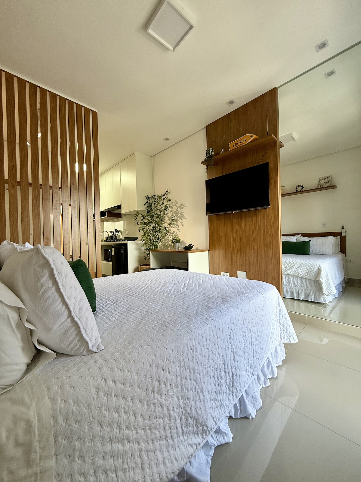 Relaxe neste lugar único e tranquilo.cozinha completa com eletrodomésticos , smart tv 43”, ventilador movel no dorm. , toalhas e roupas de cama , Linda vista , proximo a shopping center, estacao do metro e trem cptm, 15 min para aeroporto de congonhas, berrini e pinheiros, apenas 7 minutos a pé para EXPO TRANSAMERICA, 10 minutos a pé para VIBRA, 15 minutos para autodromo interlagos estacione proximo ao prédio R$ 10,00 -25,00 periodo de 12 horas ou gratis na rua CHECK IN APOS AS 15:00HS