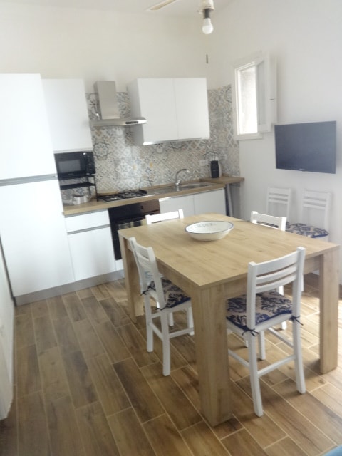 Kis lakás Trapani szívében, Tramontana történelmi falai és a strand közelében. A környék számos kényelmi szolgáltatást és üzletet kínál. A házban van egy konyha indukciós főzőlappal, mosogatógéppel és egyéb készülékekkel, egy nappalival és egy kétszemélyes hálószobával. A fürdőszobában zuhanyzó és mosógép található. A zászlóshajó a napozóágyakkal, asztalokkal és székekkel berendezett, 70 m² -es panorámás szolárium, amely ideális a városra néző pihenéshez.