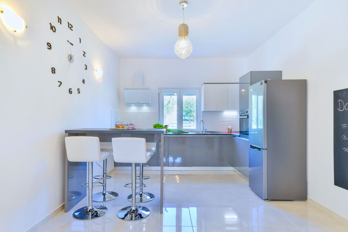 Gyönyörű villa minden olyan kényelmi szolgáltatással, amely egy felejthetetlen családi kiruccanáshoz szükséges. Biograd na Moru történelmi városától 15 km-re, Zadar gyönyörű városától pedig 30 km-re található. Elhelyezkedése ideális a partvidék bejárásához, valamint számos nemzeti parkhoz - Krka, Paklenica, Kornati, Plitvicei-tavak -, mindezt egy rövid autóútra a háztól. A Zadar repülőtér mindössze 20 km-re található a háztól. Az új horvát szuper autópálya, amely egész Horvátországot köti össze, mindössze 3 km-re található.