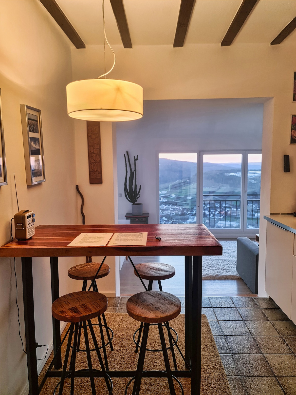 A lakás különleges hangulatú ... a régi és az új keveréke, és a szobák összeolvadnak. Először belépsz az étkezőbe, és átnézel a világos nappalin, ahonnan széles kilátás nyílik az Eifelre. Két lépcsővel lejjebb a hangulatos nappaliba lép, ahol egy nagy kanapé van, majd a hálószoba következik, amelyben egy kétszemélyes ágy (160x200 cm) és egy stabil emeletes ágy található gyermekek és felnőttek számára. Keddtől vasárnapig reggeli a kávézónkban/bisztrónkban. Szauna, Ebike kölcsönzés