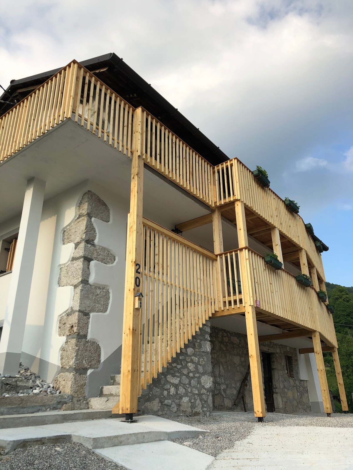 Hangulatos, modern stúdió 900 méterre a Bledi-tótól, saját terasszal, kilátással a hegyekre és parkolóval a kertben – tökéletes pároknak. Új, teljesen felszerelt, padlófűtéssel, asztallal és székekkel a teraszon pihenéshez vagy étkezéshez. Ideális kiindulópont természetkedvelőknek, túrázóknak és pároknak, akik kényelmet és magánéletet keresnek a hegyek és a városközpont közelében.