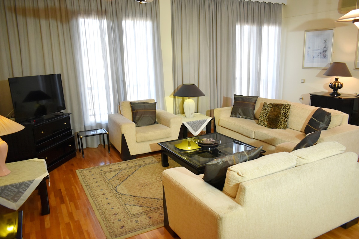 A 110 négyzetméteres lakás szó szerint Trikala szívében található, mindössze 50 méterre a városházától. Az elhelyezkedés rendkívül kedvező. A lakás a Paleo Despotiko térre néz, amely az egyik legközpontibb tér, és ideális kiindulópont a város gyönyörű részeinek felfedezéséhez, ahová gyalog is el lehet menni, és a manómalom 10 perc alatt elérhető. Ezenkívül ingyenes privát parkoló áll rendelkezésre kis és közepes méretű autók számára.