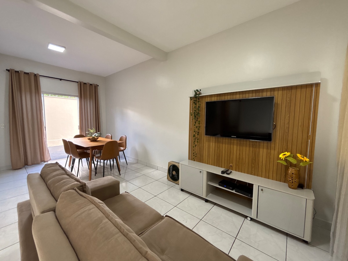 Desfrute de uma estadia inesquecível nesta charmosa casa moderna com 2 quartos (1 suíte com closet) e 2 banheiros. Ambientes amplos, pé-direito alto e decoração elegante garantem conforto e estilo. Conta com ar-condicionado nos quartos, cozinha completa, área gourmet com churrasqueira e rede, além de 1 vaga coberta. Pet friendly e com localização privilegiada no Setor Nova Suíça, a apenas 200m do Parque Vaca Brava e próximo a McDonald’s, Domino’s, padarias, farmácias e supermercados.