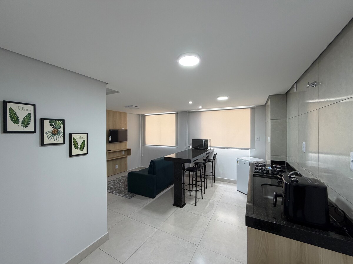 Um Loft Studio amplo de 50 metros2, planta baixa aberta, proporciona liberdade e conforto, 1 cama de casal, 1 sofa que acomoda tambem, Aproveite o acesso fácil a tudo o que precisar nesta acomodação bem-localizada, ao lado do Parque Flamboyant (lindo Parque com areas verdes, 2 lagos, pista de corrida e de ciclismo), em frente ao Estádio Serra Dourada onde acontecem grandiosos eventos e bem próximo ao Shopping Flamboyant e do Centro Cultural Oscar Niemeyer onde também acontecem Shows e eventos.