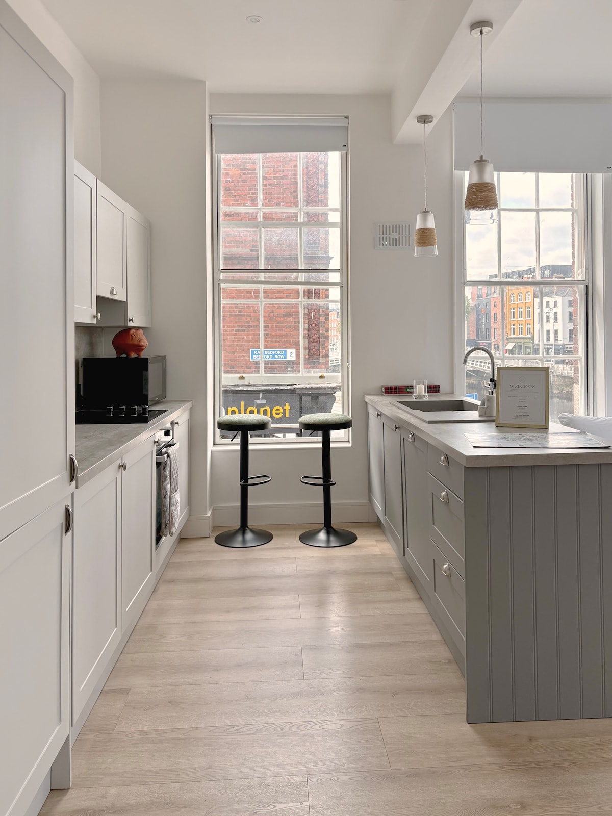 Divatos lakás a Liffey folyóra néző kilátással