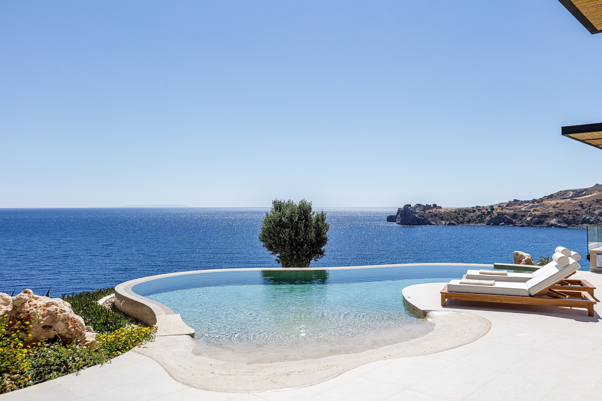 Ez az egyedülálló, földdel borított villa korlátlan kilátást nyújt a tengerre, és mindössze 250 méterre található Agios Pavlos strandjától, Rethymno déli partján. Saját úszómedencével (2,5 x 4 méter) rendelkezik, és minden modern kényelmi szolgáltatással fel van szerelve. A villa mindössze 200 méterre található egy helyi tavernától, kávézótól, bártól és minipiactól.