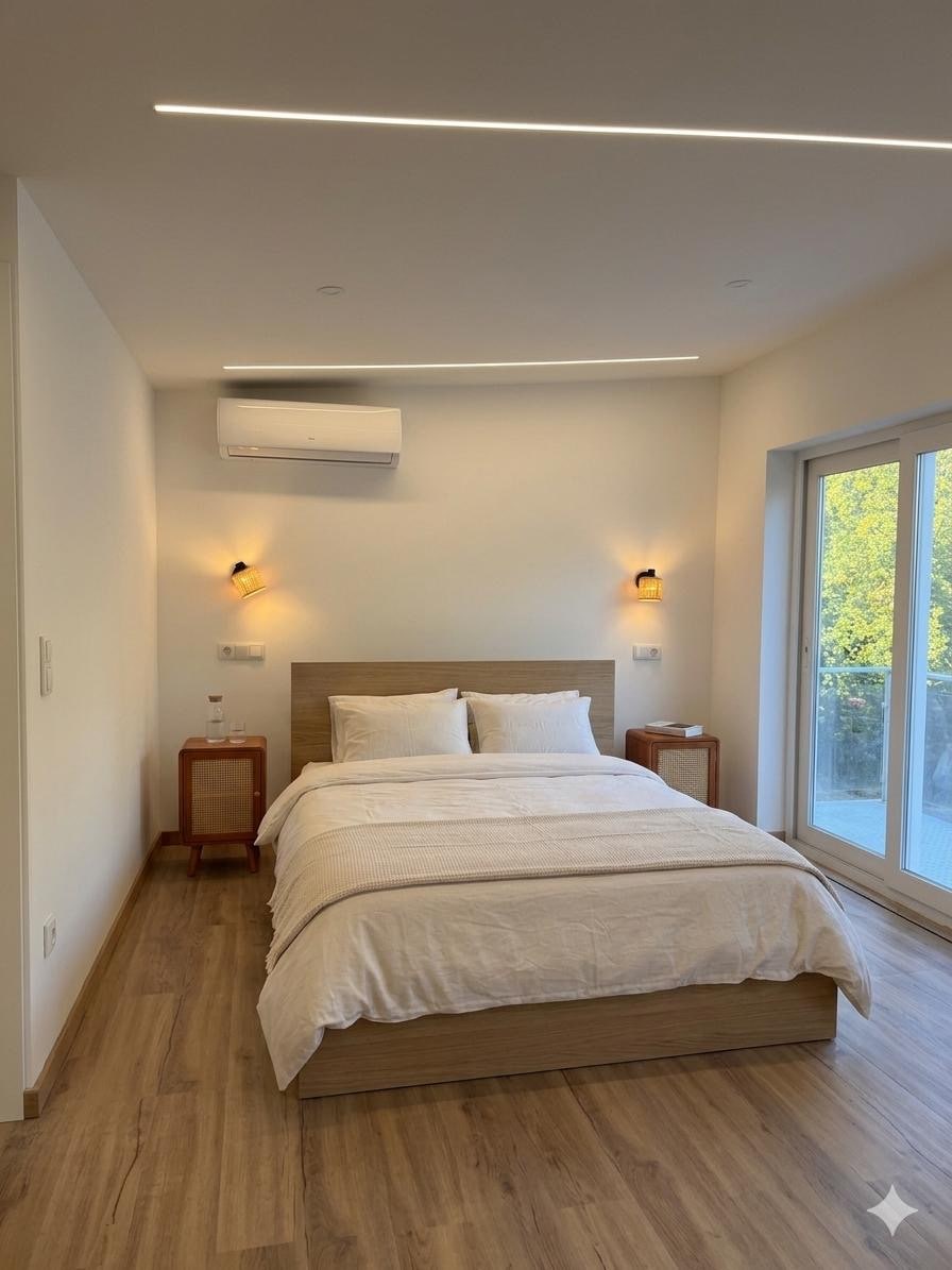 Prepare-se para uma estadia onde cada detalhe foi desenhado para inspirar. Reserve agora e sinta a diferença de viver num espaço com alma! Quarto Zen: Iluminação embutida por cima da cama para uma leitura noturna confortável. • Cozinha Premium: Máquina de lavar louça, forno e micro-ondas integrados. • Espaço Exterior: Varanda com vista direta para a área verde. Fica há 10 min do aeroporto Francisco Sá Carneiro.