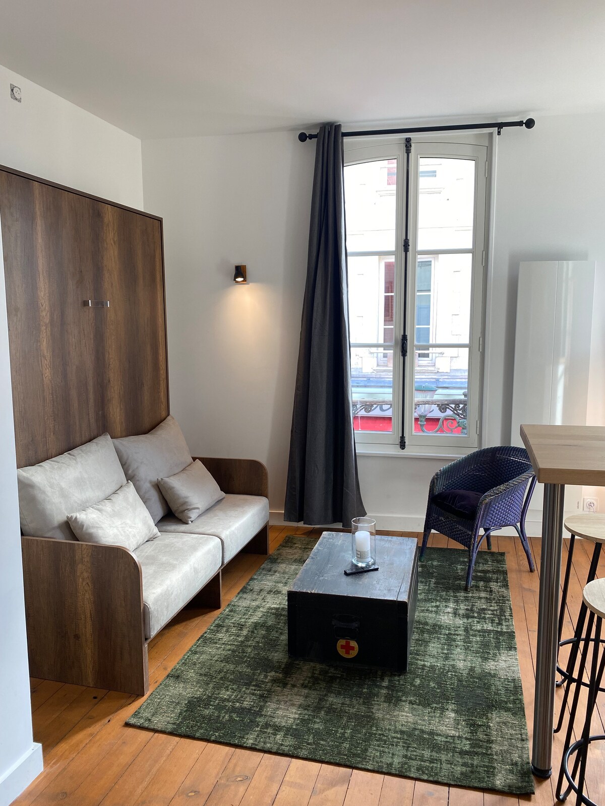 Elbűvölő, világos, 22 m² -es stúdió a 3. és a legfelső emeleten. Ideális elhelyezkedés, minden a gyaloglásról szól: • A Rue des Bains, üzletek, éttermek és a Kaszinó közelében. • Strand 200 méterre. • 14 perces sétára a Trouville vasútállomástól. Szolgáltatások: • 140 cm-es kanapéágy • TV • WiFi • Felszerelt konyha • Vízforraló és kávéfőző • Felújított zuhanyzó • Kulcsos doboz Szolgáltatások: • Ágyneműt és törülközőt biztosítunk