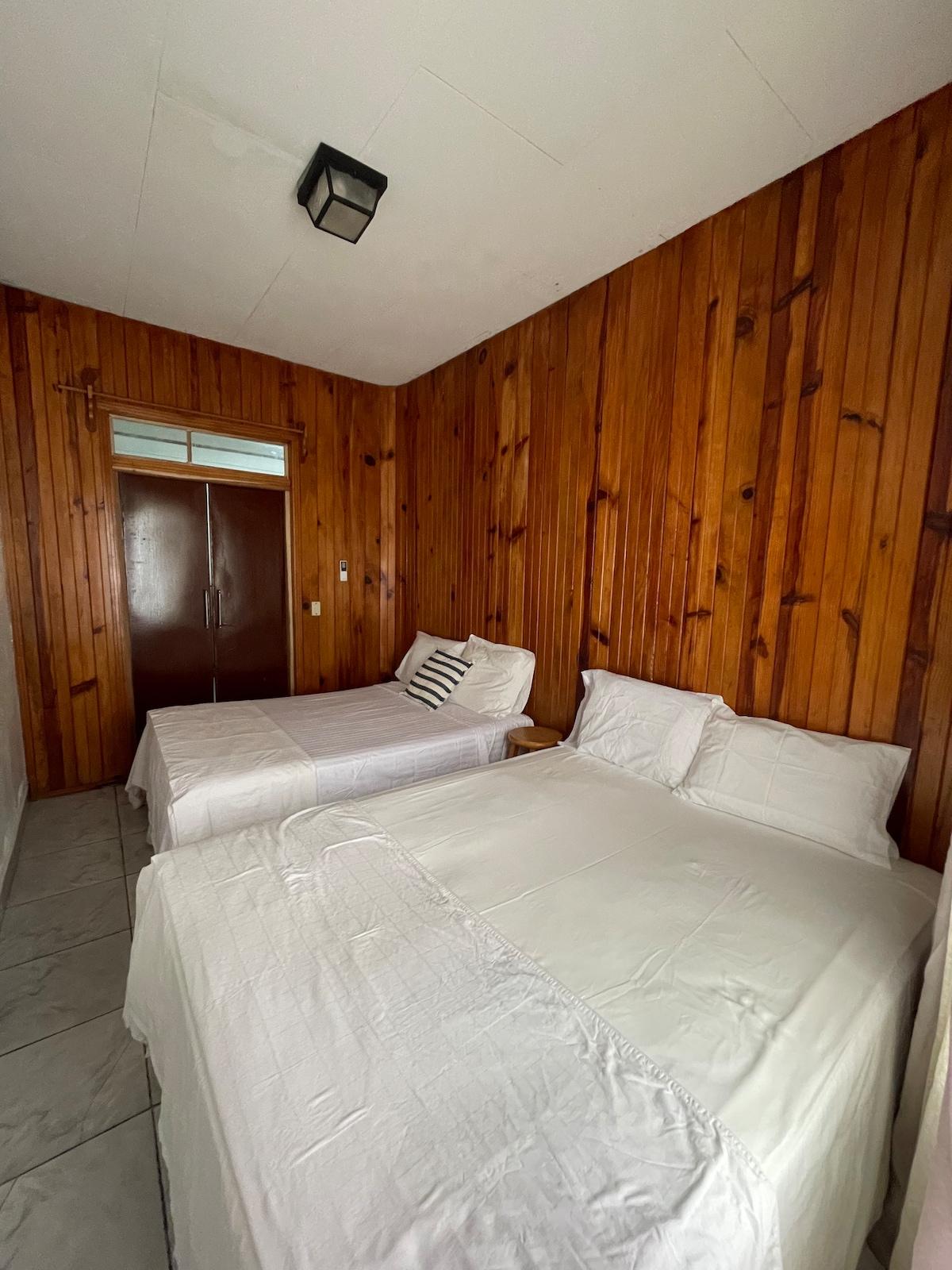 Disfruta de una estancia cómoda y relajante en nuestra habitación doble con estilo cálido y natural, perfecta para familias o grupos pequeños. El espacio cuenta con 2 camas amplias, ropa de cama fresca, aire acogedor y un ambiente tranquilo ideal para descansar después de un día en la playa o explorando Trujillo. 🌴Lo que te encantará: - Ambiente limpio y ordenado - Decoración en madera con estilo natural - Espacio cómodo para 2 a 4 personas 📍 Nos encontramos en el centro de la ciudad.