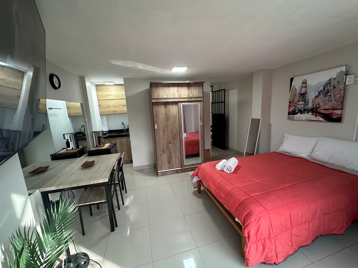 ✨ Üdvözlünk a trujillói bázisodon – modern, csendes, és mindentől csak pár lépésre, amire szükséged lehet 🏠 Ezt a stúdiólakást azoknak tervezték, akik értékelik a rendet, a kényelmet és a produktivitást. Tökéletes az üzleti utazóknak és azoknak, akik egyszerűen csak pihenni és feltöltődni szeretnének. Egy biztonságos, családi épület harmadik emeletén leszel, amely ellenőrzött bejárattal és az Óvalo-kertre nyíló békés kilátással rendelkezik – innen fentről más ízű a reggeli kávé… 📍 Ideális elhelyezkedés + garantált kényelem = egyedülálló élmény.