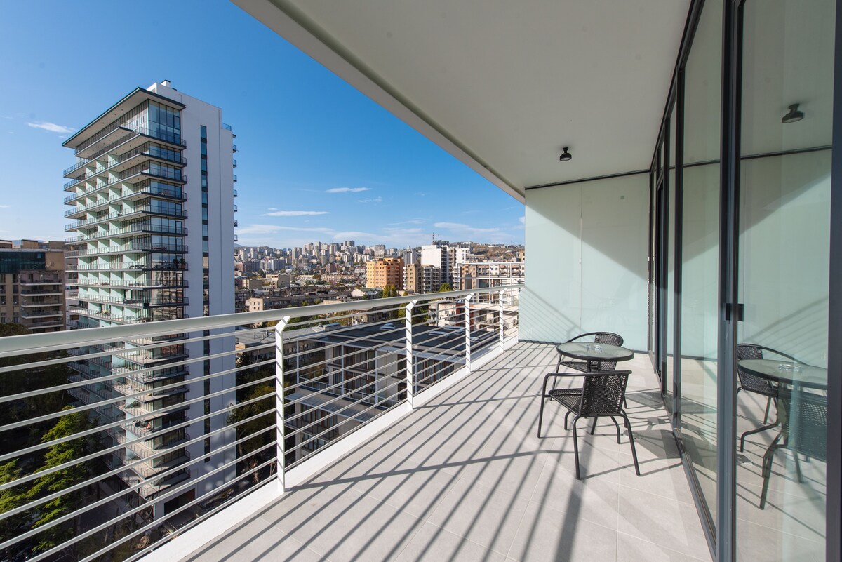 Nagy, 120 m2 alapterületű, háromszobás lakás jó felújítással. Két erkély gyönyörű kilátással a városközpontban, két metróállomás („Station Square” és „Marjanishvili”) között, szintén 10 perc sétára a Karvasla bevásárlóközponttól. A lakás dizájnja szeretettel készült, kiváló minőségű anyagból készült, beépített, modern készülékekkel, amelyek otthonos és modern légkört teremtenek. Az épület 2010, lifttel. Az apartman a 3. emeleten található.